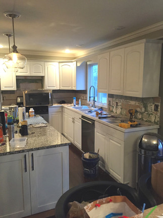 Total master bath remodel in Granger, Indiana : Jacuzzi tub to freestanding, accent wall, custom tile shower. New kitchen cabinets and backsplash.